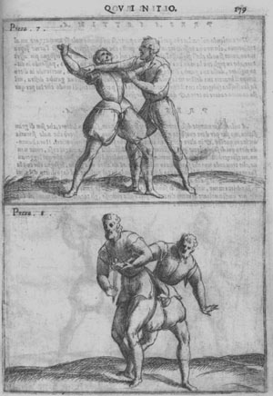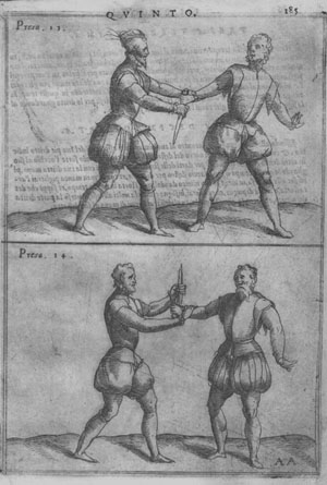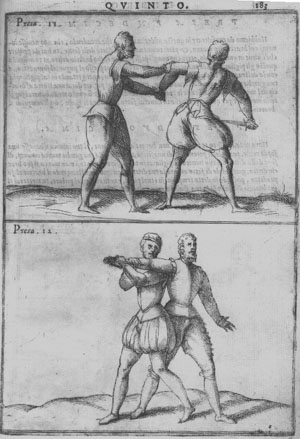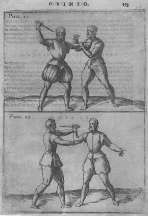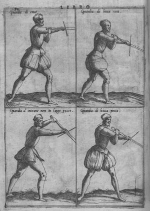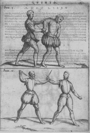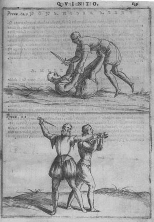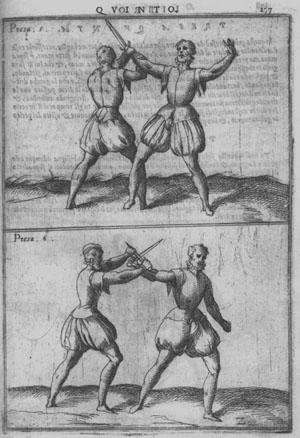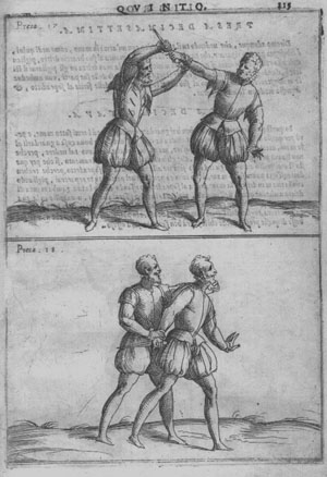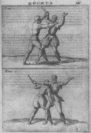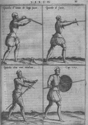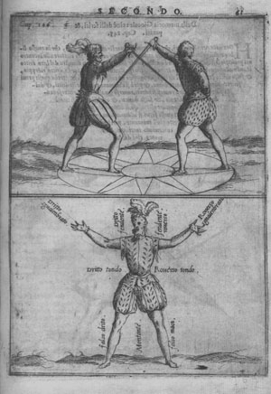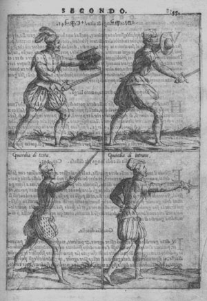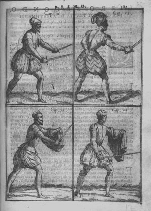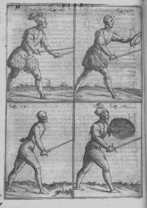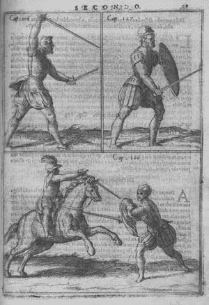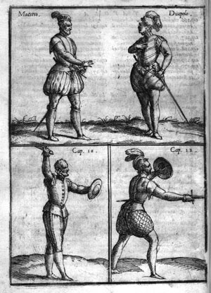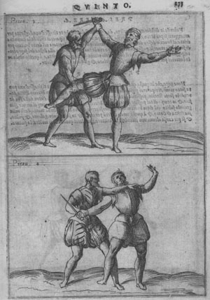 | Il combattimento con spada e brocchiero piccolo ( in alto a destra) |