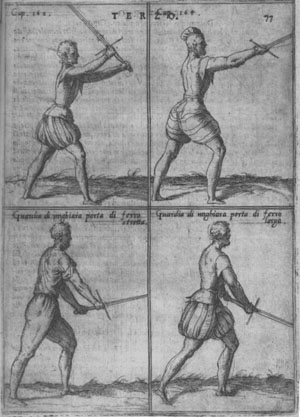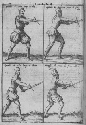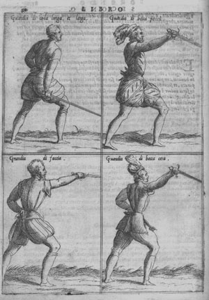| Spada a due mani: terzo assalto. Filo dritto contro filo dritto (in alto a destra) |