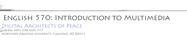 This course examines the ways rhetorical principles are applied to technological design and presentation when the concept is "large". Whereas we could design pamphlets, websites, or press dvd's on practical applications (such as technical sequences in music or movies), we will take the concept of peace and consider how peace is presented, and how we will present peace in text, visually, and experiential.