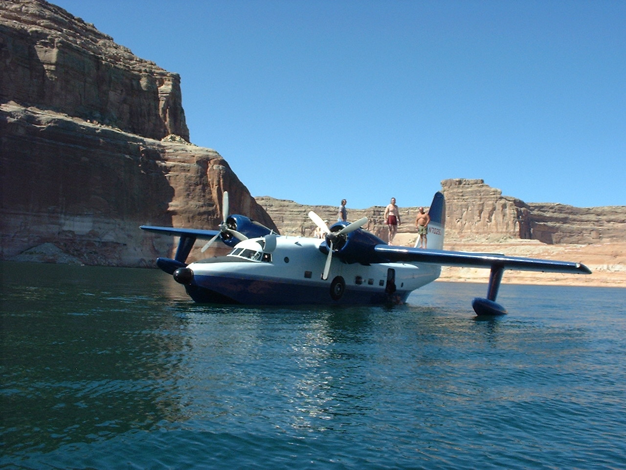 September 26, 2004 fishing by myself and shadowing John Lassandro around in his boat. This trip Chris couldn't make it up, and I started fishing Padre Bay area on Friday afternoon with a few boils happening in the evening that produced some nice Stripers. I went out again Saturday morning, and worked Padre Bay to the back of Gunsight! While I was jigging some Stripers and Walleye up in Last Chance, I heard a loud roaring noise coming up the canyon. I thought it was a big cigar boat, but when I looked it was a big Boat Plane coming in to land! That was a site to see and hear, and the Plane ended up in the back of Last Chance where the occupants decided to go swimming by jumping off of the wing into the lake water!