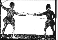 con la spada della man mancina, in guardia di dentro, et subito presentato