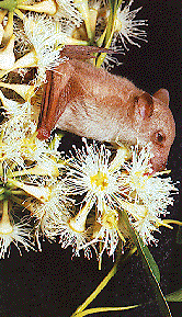 The bat on the left is interacting with the flowering plant.